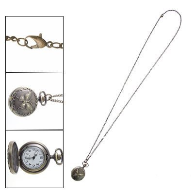 Color: Bronze Tone.Case Diameter: 1" Case Thickness, zero.3" Chain Length: 16.2".Design: Retro Style, Butterfly Pattern Case.Package Content : 1 x Bronze Tone Necklace Watch.Material: Chrome...Bronze Tone Butterfly Carved Case Pocket Chain Necklace Watch Features.
