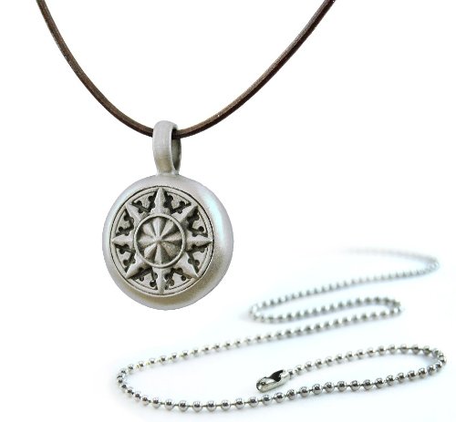 Working Compass on Back Side.Solid Pewter.Designed and Manufactured in the USA.Adjustable Leather Necklace Included, plus.Stainless Steel Ball Chain Included...Pewter Compass Rose 2 Pendant Necklace Features.